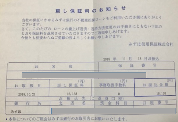 そしてついでに、物件購入時に入った不動産担保ローン(団体保険)の戻し保険料があります。