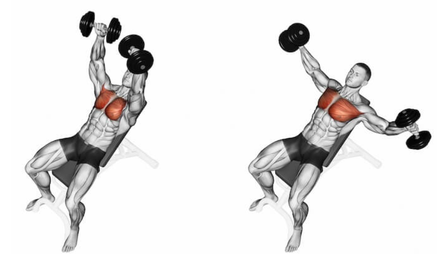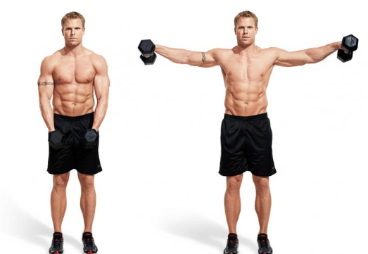 2.それぞれの腕を横方向に伸ばすような形でダンベルを持ち上げる