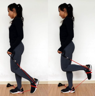 - 鍛える足を、かかとがお尻に当てるように膝を曲げていく